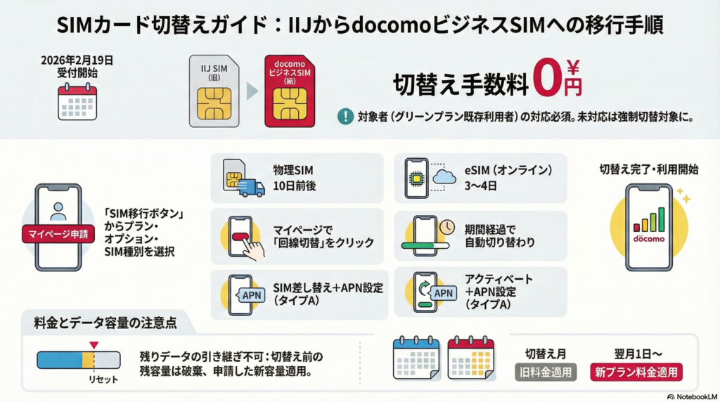 ※すでにdocomoビジネスSIMカードをご利用中の方、および2026年1月30日10時以降に公式サイトからお申込みされた方は切替え不要です。